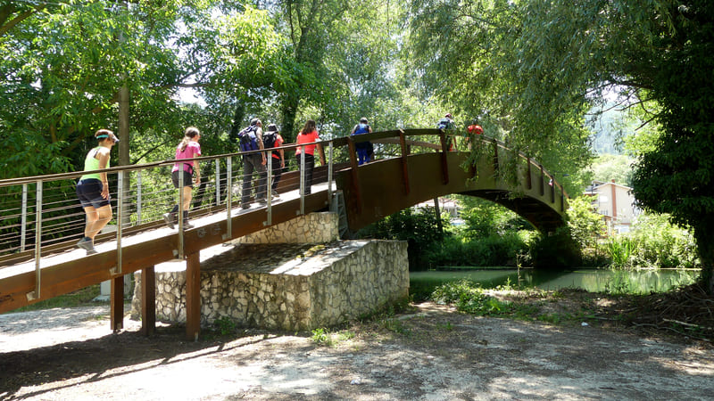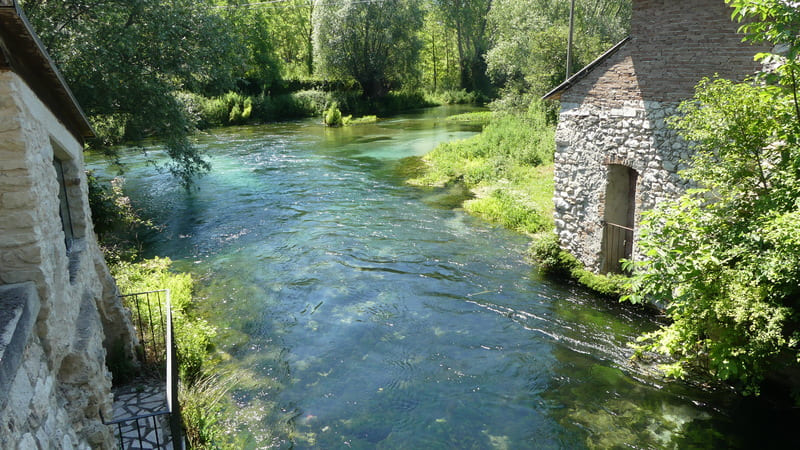 Da Navelli si imbocca il profondo vallone che scende alla piana di Capestrano, si risale leggermente fino ad attraversare il centro storico, patria di san Giovanni da Capestrano, e poi nuovamente in discesa, fino alle sponde del Tirino; si prosegue lungo il fiume fino alla magnifica chiesa medievale di San Pietro ad Oratorium e, sempre sulla sponda del fiume, si giunge a Bussi sul Tirino, conclusione della tappa.