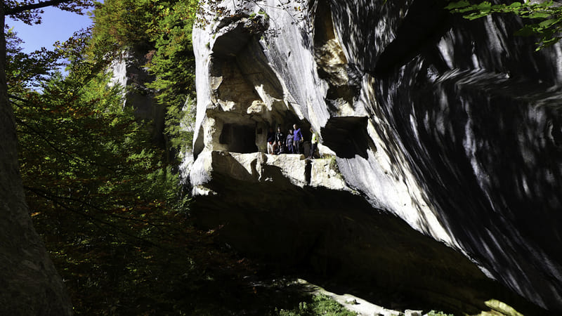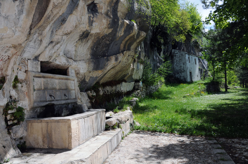 Dall’abbazia di Santo Spirito di Maiella dapprima si ridiscende per breve tratto fino al corso d’acqua, quindi si prosegue su impegnativa salita nel bosco fino a Piana Grande e, su sentiero in discesa sempre nel bosco, si arriva allo spettacolare eremo rupestre di San Giovanni all’Orfento. Da qui, si risale fino all’uscita dal bosco e si prosegue su sentiero scoperto, tra i pascoli, fino al Rifugio “M. Di Marco”, dove si puΓ² pernottare (occorre munirsi della chiave presso il Centro Visite di Caramanico).