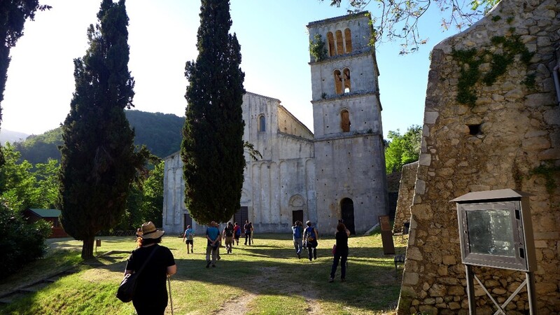 La prepositura di San Liberatore a Maiella, lungo la verdeggiante valle del fiume Alento, è stata il più importante avamposto cassinese in terra d’Abruzzo, direttamente sottoposta all’abate di Montecassino. Il monastero, al di là di alcuni resoconti leggendari che ne attribuiscono la fondazione a due patrizi romani o addirittura a Carlo Magno, confronta nei documenti a partire dal IX secolo; in particolare, il Memoratorium dell’abate Bertario ne descrive i vasti possedimenti, che si estendevano lungo le valli del Foro e dell’Alento, e arrivavano fino al mare. Distrutta da un terremoto alla fine del X secolo, venne ricostruita in forme grandiose dal prevosto Teobaldo a partire dai primi anni dopo il Mille, per poi essere ulteriormente trasformata e abbellita per volere del celebre abate cassinese Desiderio, che intorno al 1080, prima di diventare papa col nome di Vittore III, conferì alla chiesa monastica le forme ancora oggi visibili. In puro stile romanico, San Liberatore costituì un modello da imitare per innumerevoli architetture benedettine successive, irradiando in tutta la regione le soluzioni artistiche che qui erano state adottate; oggi, del complesso, rimangono solo la chiesa e il campanile, mentre risultano scomparsi gli annessi monastici. Il grandioso edificio ha un impianto romanico lombardo con facciata tripartita, cui corrispondono tre portali archivoltati e tre ampie navate. I portali presentano la tipica ornamentazione a palmette di matrice cassinese, ma quello di destra mostra due leoni accucciati e affrontati che lavorano tutto lo spazio dell’architrave. Le navate sono divise da arcate a tutto sesto su massicci pilastri quadrangolari e sono chiuse da altrettante absidi, decorate all’esterno con archetti pensili, che corrono anche sulla sommità della facciata e dei prospetti laterali. Nel catino absidale centrale rimangono importanti resti di affreschi della seconda metà del XIII secolo, che raccontano la leggendaria origine dell’abbazia; coevo agli affreschi, e possibile alla stessa committenza dell’abate francese Bernardo Ayglerio, è il meraviglioso pavimento a mosaico cosmatesco, purtroppo conservato solo per una porzione della navata centrale. Più antico di alcuni decenni è l’ambone (ricostruito coi frammenti superstiti), realizzato sullo stile di quelli di San Pelino a Corfinio e di Santa Maria di Bominaco nel penultimo decennio del XII secolo. La chiesa mostra anche interventi riferibili ai secoli successivi, come l’ampia fila di finestre cinquecentesche della navata centrale e la suggestiva sequenza di contrafforti sul fianco destro, necessari a contrastare la spinta del terreno; la copertura, invece, è stata ricostruita nei corso dei restauri del ‘900.
