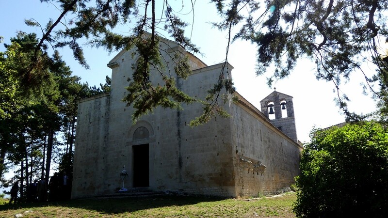 L’importante abbazia benedettina di Santa Maria è posta su un colle roccioso dominato dall’antico castello di Bominaco, una fortezza che controllava sia l’altopiano a nordest, attraversato dal tratturo, sia la vallata del fiume Aterno a sudovest. Il complesso monastico, di cui resta la sola chiesa, pare sia di fondazione anteriore al 1000, ma venne rinnovato nel XII secolo, epoca in cui si accese una lunga controversia per il controllo dell’abbazia tra il vescovo di Valva e l’abate bominacense, che non intendeva sottostare all’autorità diocesana. La chiesa, restaurata con la rimozione delle aggiunte barocche, è una pianta basilicale a tre navate, scandite da colonne monolitiche di reimpiego e chiuse da altrettante absidi; le decorazioni scultoree del semplice portale di accesso e delle monofore absidali si datano al XII secolo, epoca cui risalgono anche il prezioso ambone in pietra a cassa quadrangolare (datato 1180 – fig. a dx), il candelabro per il cero pasquale, tortile su un leone stiloforo con capitello riccamente lavorato, e la cattedra abaziale, posta sul fondo dell’abside centrale, fatta realizzare dall’abate Giovanni nel 1184. Datato invece al 1223 è il pregevole complesso altare-ciborio, con una lunga iscrizione dedicatoria che ricorda contemporaneamente papa Onorio III, l’imperatore Federico II e l’abate Berardo, che ne fu il committente.